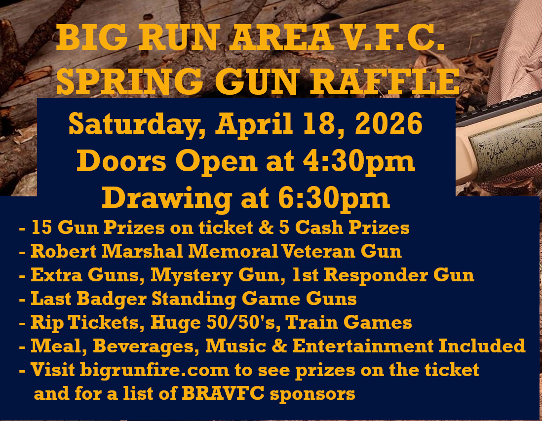 The annual spring gun raffle is Saturday, April 18, 2026.